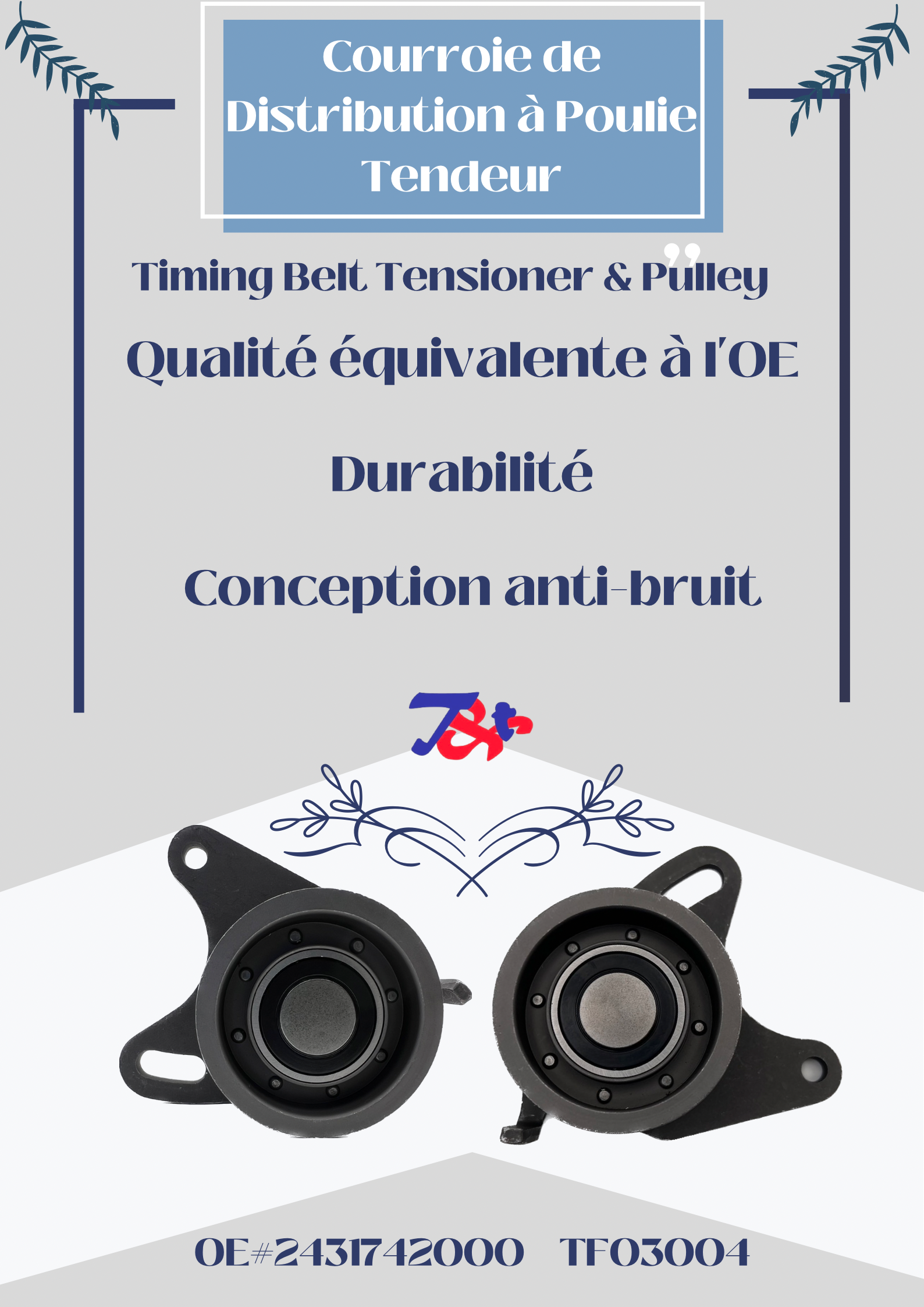 - La Courroie de Distribution à Poulie Tendeur/Timing Belt Tensioner & Pulley présente une conception réduisant le bruit, assurant un fonctionnement silencieux et une expérience de conduite confortable.
